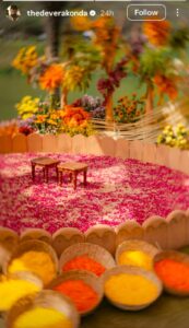 शादी से पहले चार दिनों तक चले प्री-वेडिंग फंक्शन में स्पोर्ट्स एक्टिविटी, हल्दी और संगीत जैसे कार्यक्रम आयोजित किए गए। हल्दी समारोह की कुछ तस्वीरें सोशल मीडिया पर वायरल हो रही हैं, जिनमें फूलों से सजा गोलाकार मंडप और गुलाब की पंखुड़ियों से बना खूबसूरत कारपेट नजर आ रहा है।