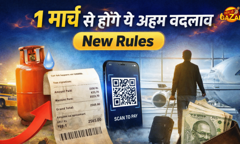 1 मार्च से देशभर में कई अहम बदलाव लागू हो सकते हैं। WhatsApp और Telegram के नए नियम, UPI ट्रांजैक्शन में अतिरिक्त वेरिफिकेशन, RailOne ऐप की शुरुआत, बैंक मिनिमम बैलेंस कैलकुलेशन में बदलाव और LPG सिलेंडर की नई कीमतें आपकी जेब पर असर डाल सकती हैं। जानें 1 मार्च से लागू होने वाले सभी बड़े बदलावों की पूरी जानकारी।